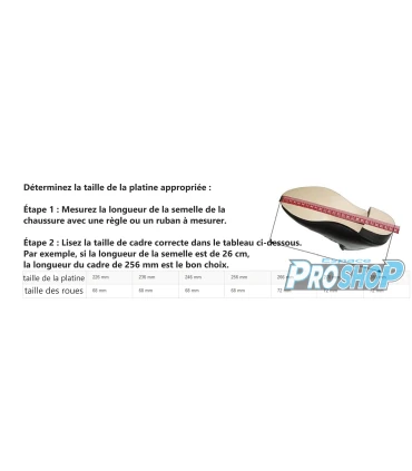 Étape 2 : Lisez la taille de cadre correcte dans le tableau ci-dessous. Par exemple, si la longueur de la semelle est de 26 cm,